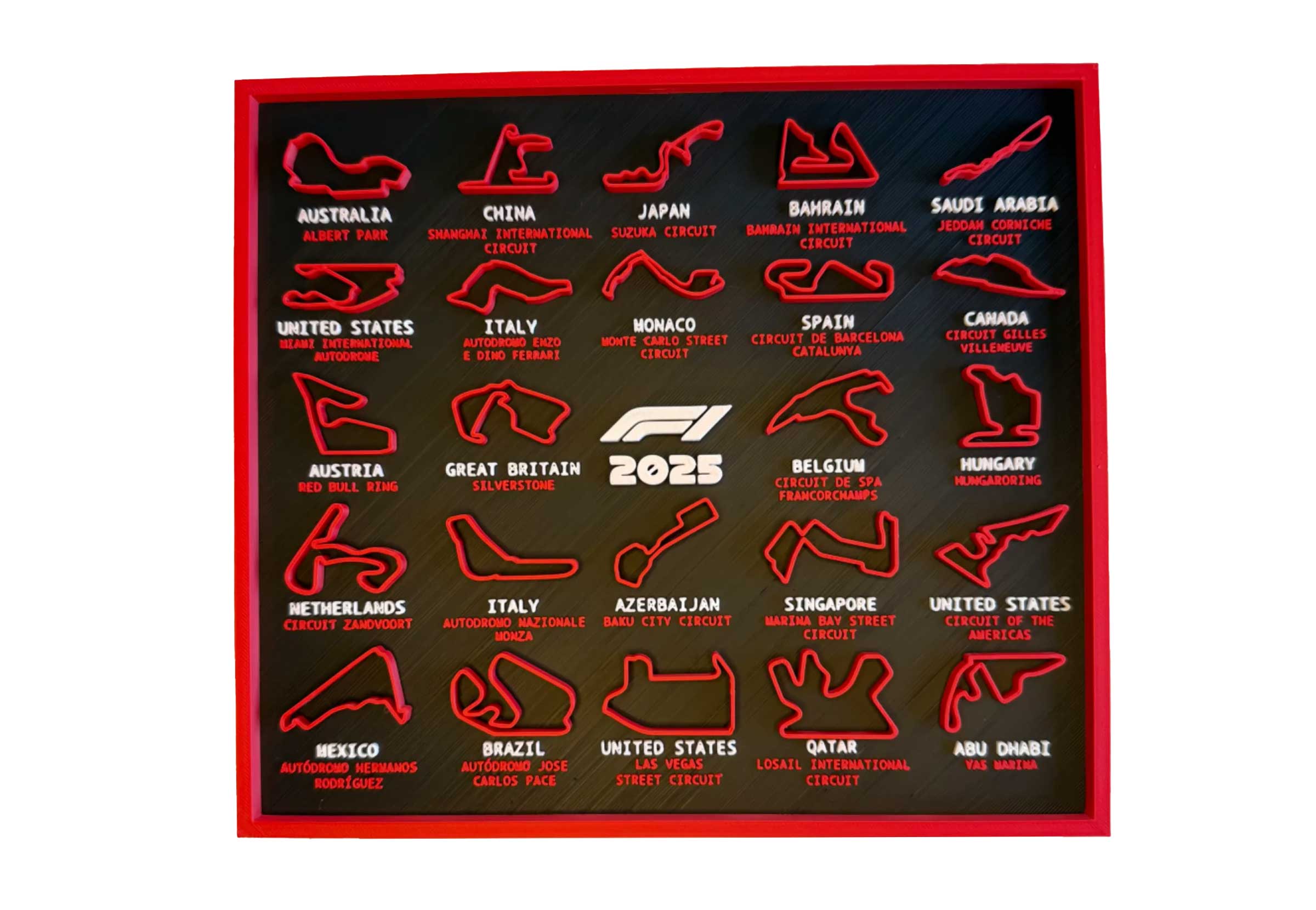 Keep pace with every Grand Prix in style with this stunning 2025 Formula 1 calendar, 3D printed with incredible detail. Each race is marked with its track layout and location, making it not just a calendar, but a display-worthy piece of F1 art.
