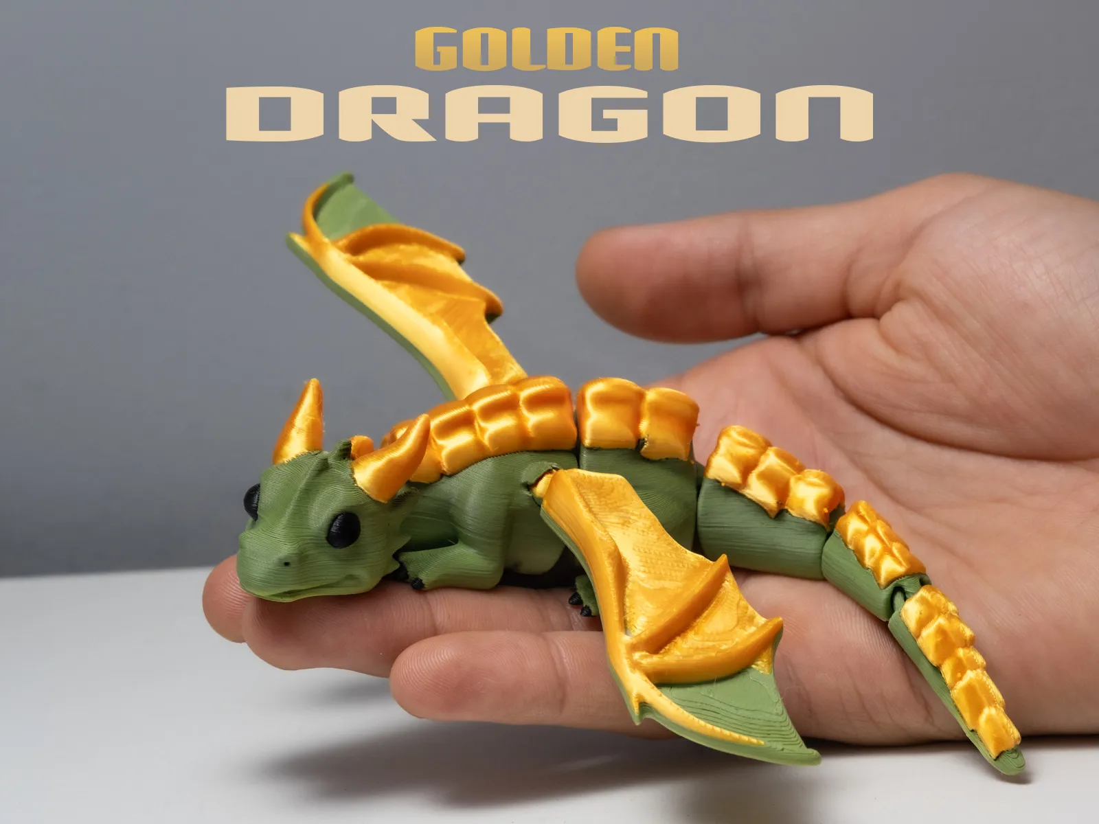 Golden Dragon Flexie – a fun 3D printed flexi toy made to order in Ireland. Please allow 1–3 working days before dispatch.