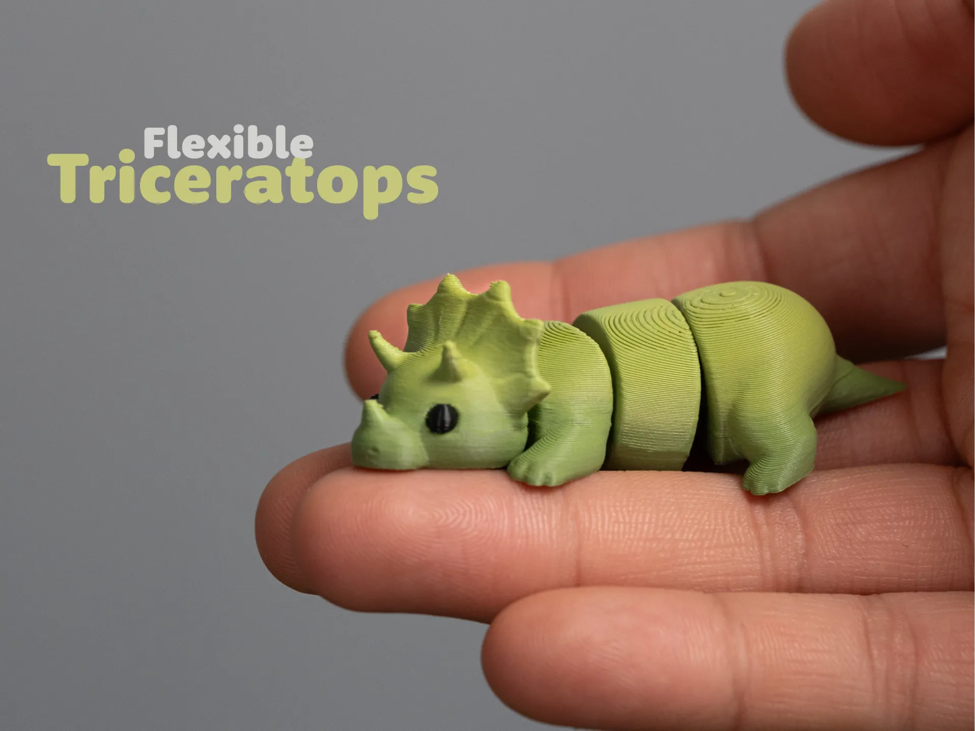 Triceraptops Flexie – a fun 3D printed flexi toy made to order in Ireland. Please allow 1–3 working days before dispatch.
